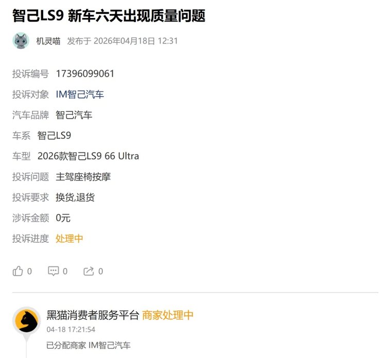 從投訴平臺反映的問題看,智己在銷售服務規范、產品質量一致性、售后響應效率等方面仍需加強。LS8是智己品牌向上的重要嘗試,但能否最終“站穩”高端市場,還取決于其能否將“滿配”的產品力與“靠譜”的服務力同步兌現給消費者。