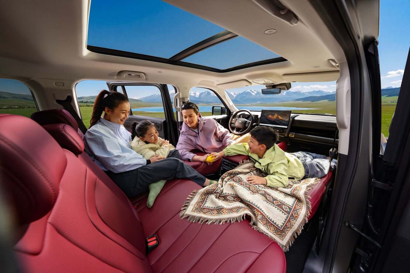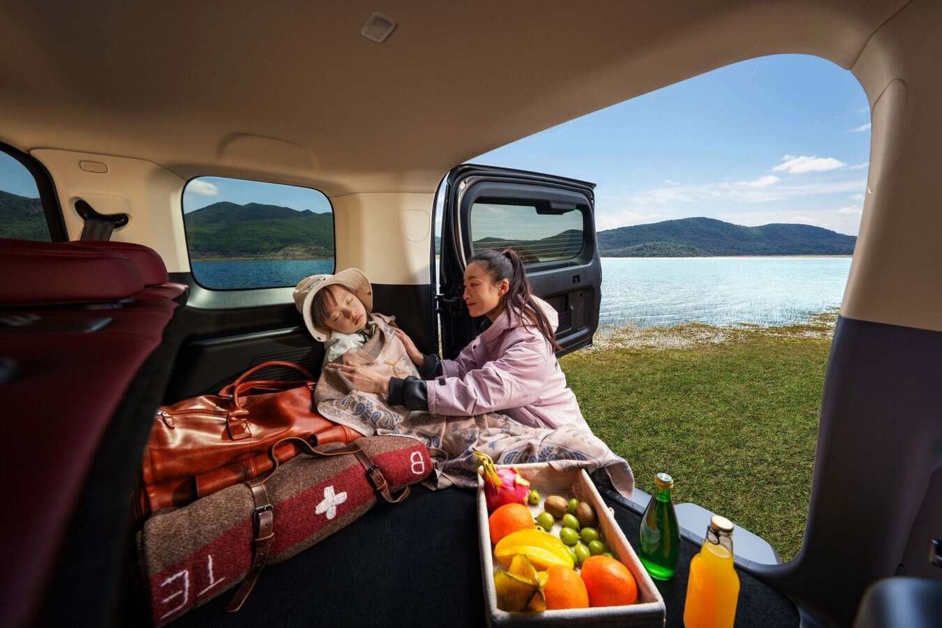5 座版車型791L 超大后備廂容積,搭配45 處人性化儲物空間從容包攬全家所需,玩具、戶外帳篷、露營裝備皆可分區收納、整齊規整,告別雜亂擁擠。后排座椅純平放倒,瞬間變身為寬敞舒適的“移動大床房”,露營休憩、短途午休、臨時歇腳主打一個自在愜意。內飾延續高端質感,熔巖紅配色搭配軟包門護板,觸感溫潤親膚,讓孩子在后排自在玩耍、倚靠、觸碰,全程不用擔心磕碰受傷,全家出行更舒心。