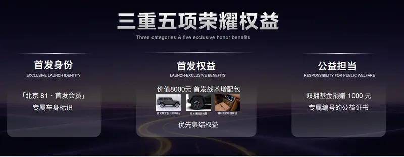 北京越野旗下中國首款戰術方盒子——北京81,傳承北汽六十余年深厚軍工基因,采用BiP(Build in Public)造車新模式,融合軍工級可靠品質和多場景適配能力,以獨特的方盒子硬朗造型和戰術屬性開創全新品類。