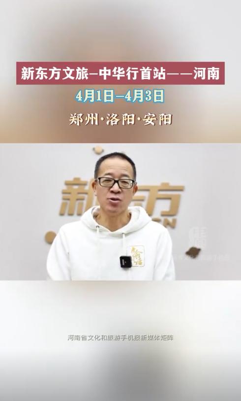 此前,據河南省文化和旅游手機報報道,俞敏洪介紹,新東方文旅-中華行首站,河南大型文化戶外直播4月1日-4月3日在鄭州、洛陽、安陽進行。