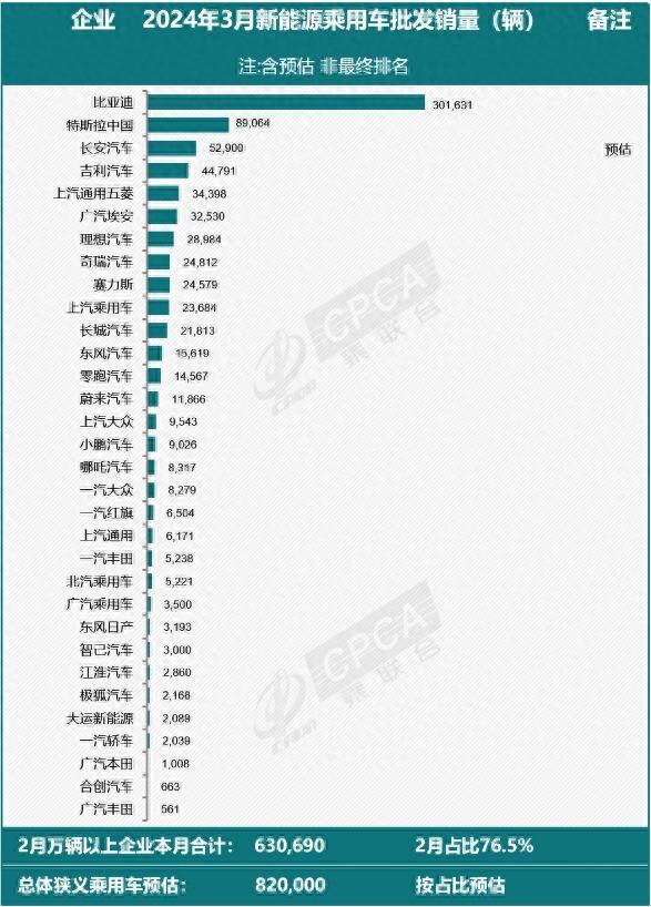 爭奪新能源車市,競爭殘酷又激烈,有人迎來高光時刻,有人被慘淡淘汰出局。在市場面前,有銷量才能有更大的發(fā)展空間。3月份,鬼哥在“崔東樹”公眾號上看到乘聯(lián)會發(fā)布的2024年3月新能源乘用車廠商批發(fā)銷量信息。