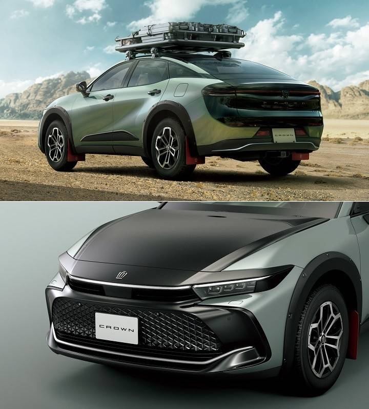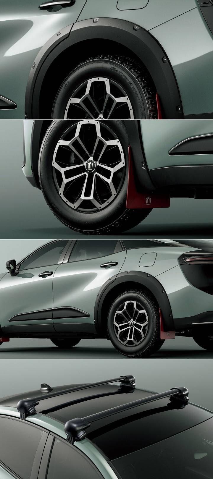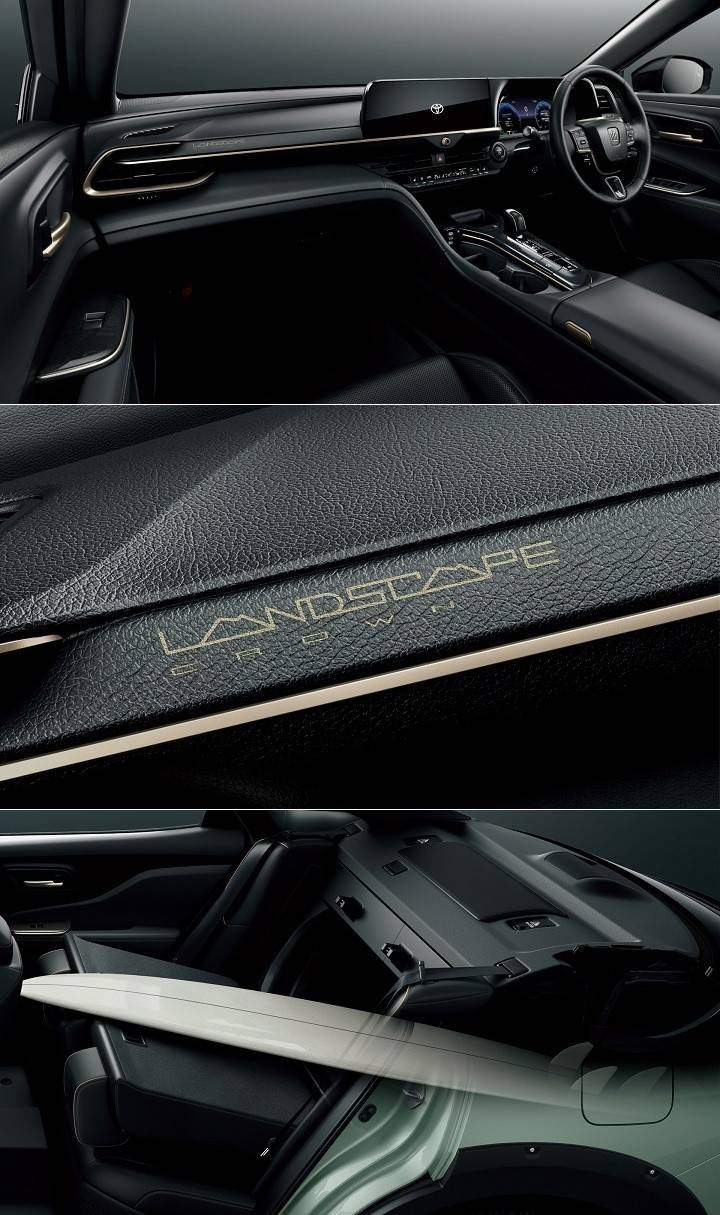 這次新年款日規皇冠 Crossover 的一大亮點也在于新增了「Landscape」特別車型,其是基于 RS 版來推出,而就猶如車名上所示,新車型即是強調戶外風格的特性,因此為車輛注入許多獨特的元素;首先看到外觀,Landscape 采用黑色以及城市卡其色來搭配作為車色,同時細節上也有許多特色,包括輪拱上采用獨特的 Gori Gori Black 漆面,搭配上 245/60R18 全地形輪胎與專屬輪圈樣式和紅色擋泥板,同時離地間隙也增加了 25mm,至于車頂架則列為選配。