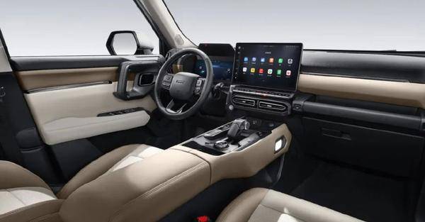哈弗二代大狗 Hi4版和捷途山海T2的布局設(shè)計(jì)類似,同樣采用T型布局,儀表盤設(shè)計(jì)與哈弗大狗十分相似,中控區(qū)域設(shè)計(jì)有14.6英寸大屏,搭載了新一代Coffee OS智能座艙系統(tǒng),內(nèi)置了酷我音樂、喜馬拉雅、騰訊視頻等影音娛樂生態(tài),但比較遺憾的是,二代大狗 Hi4版并沒有搭載時(shí)下流行的高通8155芯片,一定程度上也會(huì)影響車機(jī)的流暢度。其它細(xì)節(jié)方面,二代大狗 Hi4版門板上依然延續(xù)了燃油版的設(shè)計(jì),帶有綁帶式杯架和加固式越野把手,中控區(qū)域還保留了機(jī)械物理按鍵,呈現(xiàn)出十足的野性。
