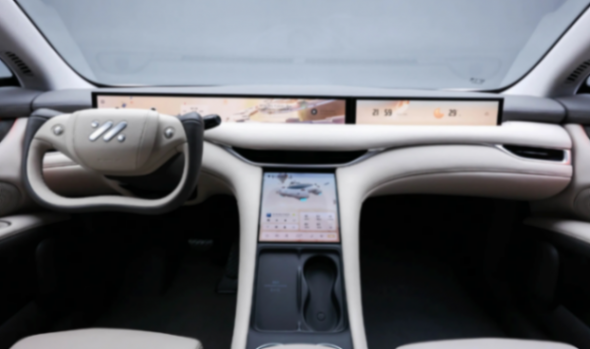 智己LS6采用全畫幅數字座艙,特點就是可以升降的貫穿屏幕,顯示效果以及互動模式都比較多,它也是同價位產品中屏幕數量和總計尺寸都有優勢的車型,也通過這點向用戶傳遞它的智能理念。