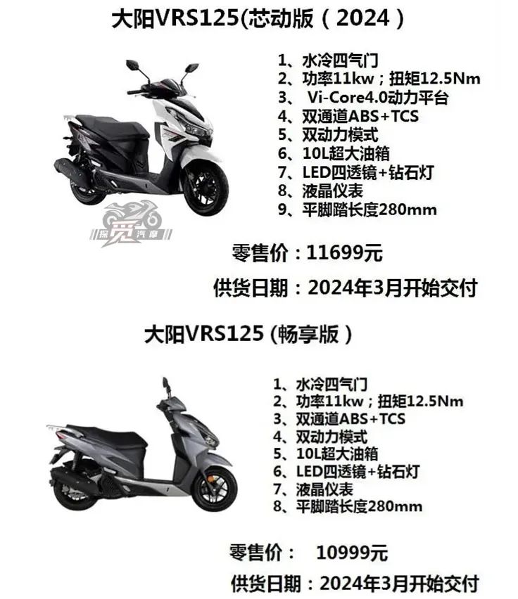 過去大陽的車總是一個車型一堆配置,這次VRS125升級到24款以后就只保留芯動版和暢享版兩個車型了。