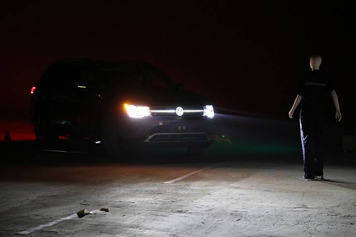 夜晚駕駛時,燈光照明問題導致的盲區大是許多司機頭疼的問題。在燈光模擬對比中,途昂憑借IQ.Light全LED矩陣式前大燈系統應用,隨動轉向大燈不僅可以水平調節還可以左右調節,在彎道內角處對假人的照明效果明顯優于漢蘭達。這一細節上的優化,無疑為夜間駕駛提供了更多的安全保障。